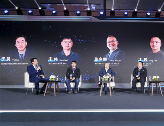 在解读完白皮书之后,本次大会围绕“智入万家,具身破局——家用服务机器人的场景革命与生态”话题,邀请浙江大学人形机器人创新中心研究员宋伟、海信星海科技(杭州)有限公司研发总监张名举博士和鹿明机器人联席CTO丁琰博士展开了一场深度对话,为家用服务机器人的未来发展锚定方向。